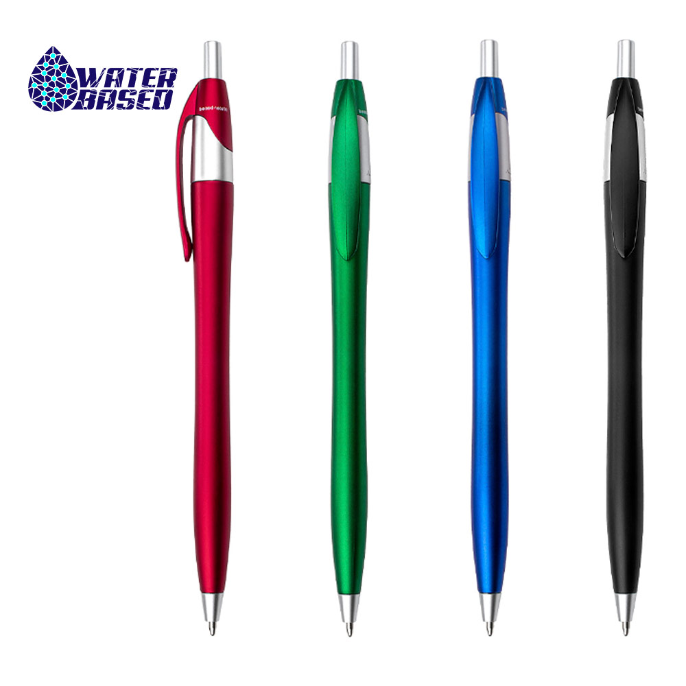 Bolígrafo con sistema de apertura retráctil. al momento de la fabricación utiliza tecnica de pintura Water Based (Bolígrafo/Esfero)