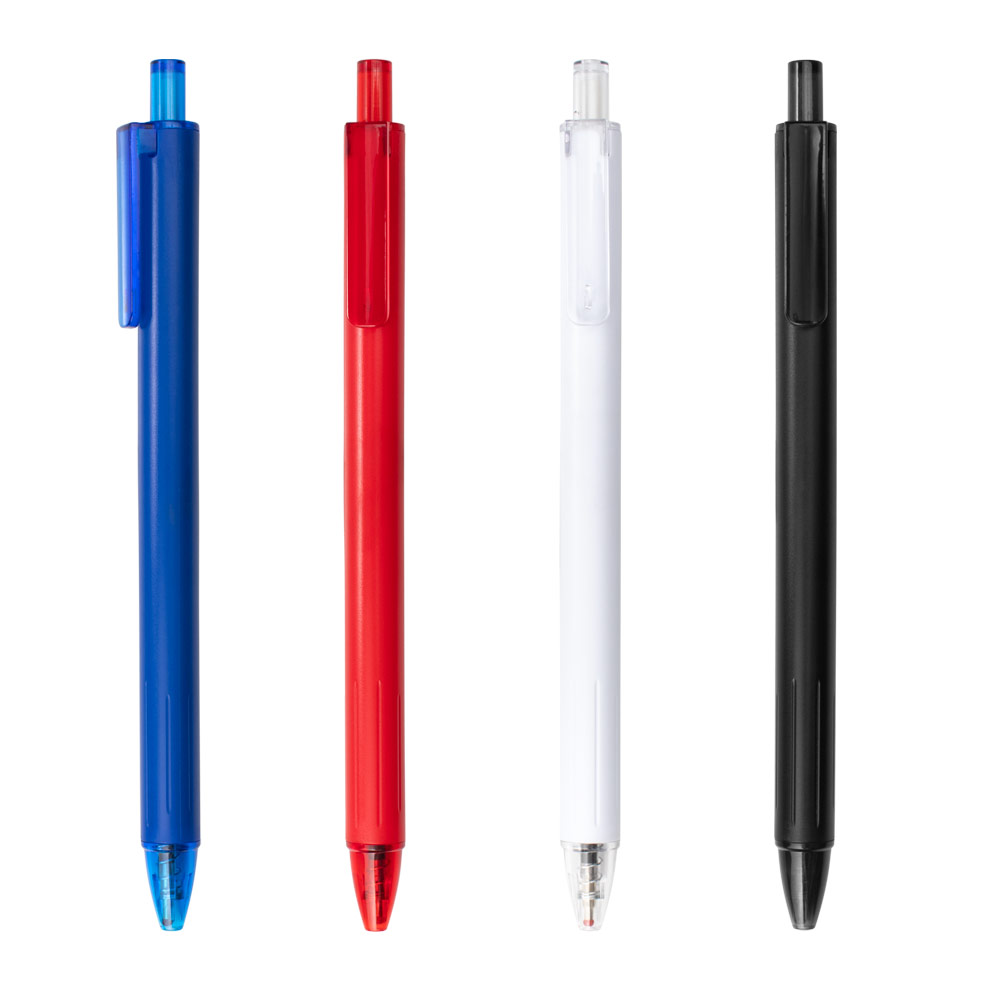 Bolígrafo retráctil con barril de color mate que aporta un acabado moderno y profesional. Cuenta con empujador, clip y punta en acabado transparente, que complementan su diseño funcional. Su tinta semi-gel ofrece una escritura suave y continua, ideal para el uso diario en entornos laborales o académicos.