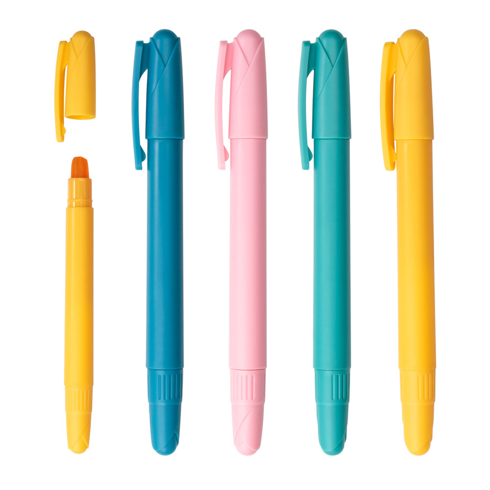 Resaltador con barril y tapa de color sólido. Su punta de cera tipo wax permite un marcado suave y uniforme, sin riesgo de que se seque con el tiempo. Ideal para uso prolongado y ambientes escolares o de oficina.