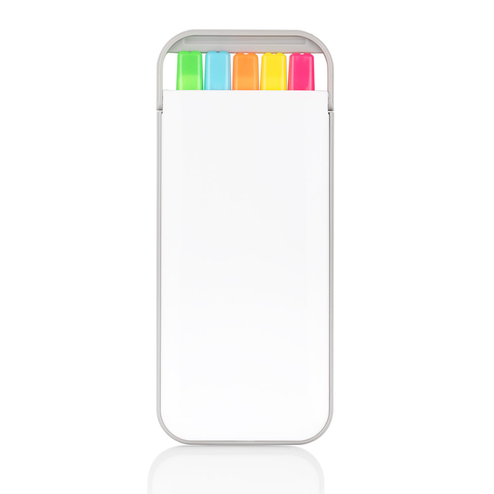 Juego de 5 resaltadores en estuche práctico, con colores vibrantes para destacar tus ideas. Cada resaltador permite extraer la mina retirando la tapa inferior, mientras que el estuche cuenta con un asa móvil para facilitar la extracción. Para guardarlos, simplemente presiónalos hacia abajo en su lugar. Ideal para organizar tu escritorio con estilo y funcionalidad.