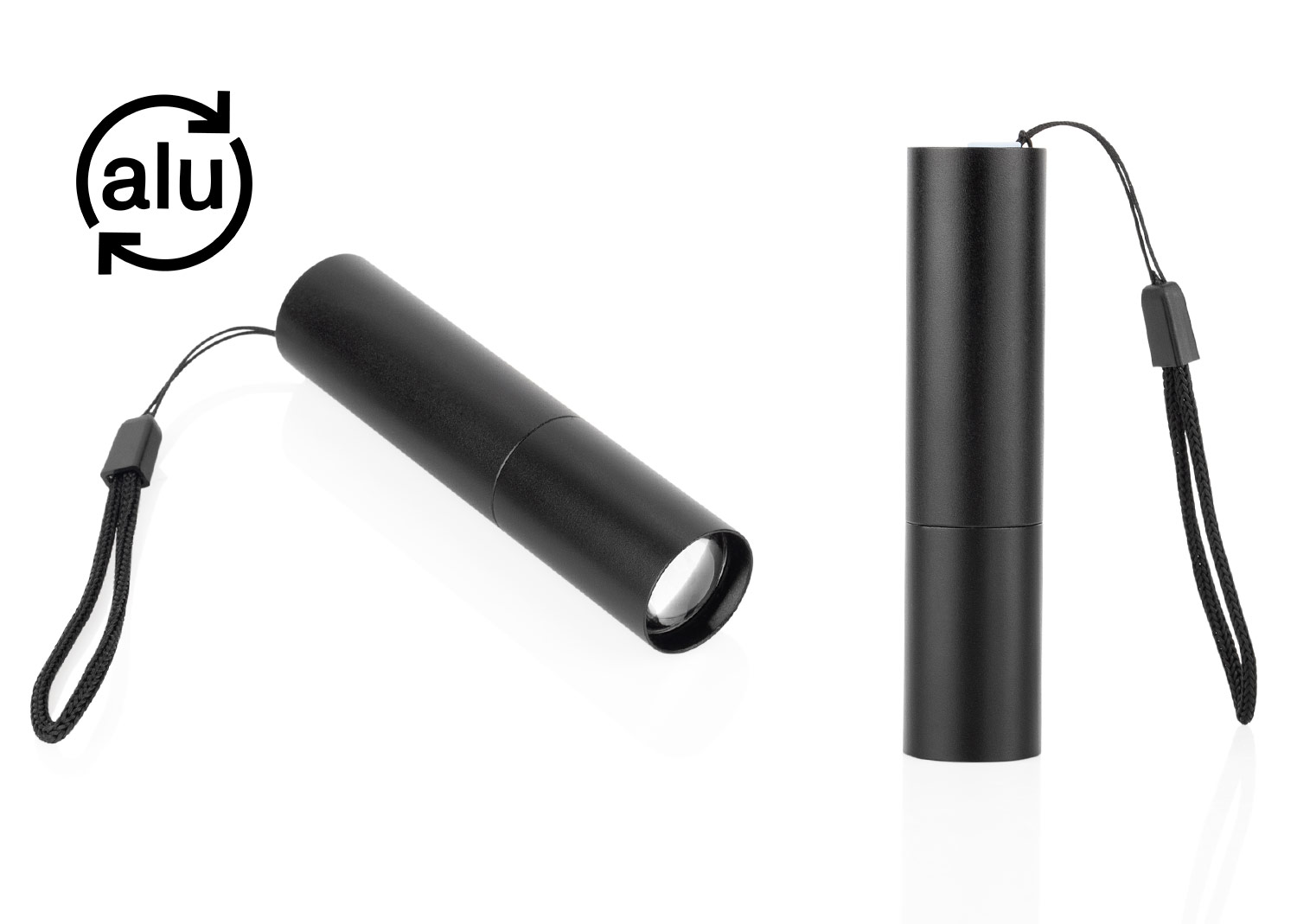 Linterna recargable de alto rendimiento con 110 lúmenes y 3 modos de luz ajustables, que se controlan mediante un botón ubicado junto al puerto de carga. Su diseño incluye función zoom in/out, permitiendo enfocar o ampliar la iluminación deslizando el cuerpo de la linterna. Equipada con batería interna de 400 mAh, cable de carga incluido y práctico cordón para llevarla cómodamente. Ideal para uso diario, actividades al aire libre o emergencias.