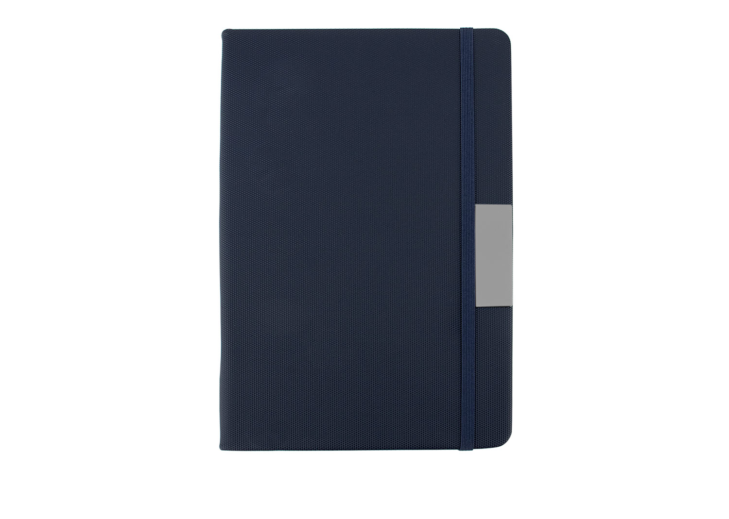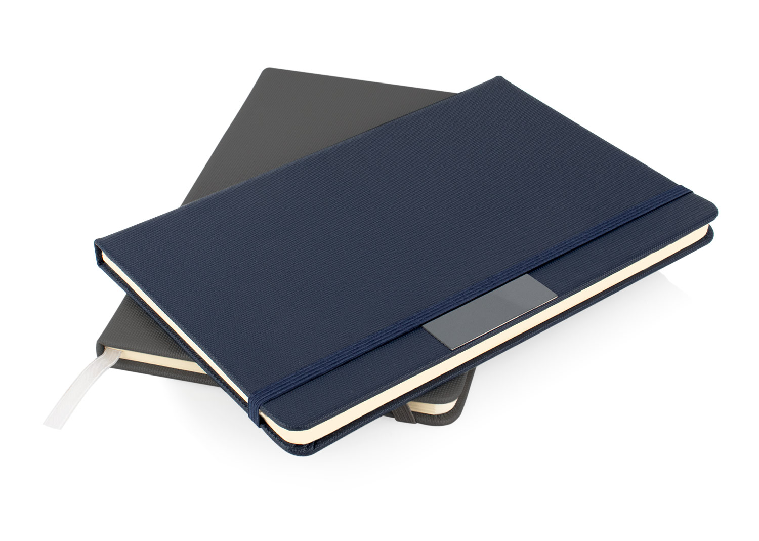 Libreta elegante con 80 hojas de papel rayado en formato A5, ideal para organizar tus ideas y notas diarias. Incluye una placa metálica perfecta para personalización, cinta separadora para marcar tus páginas y un elástico de cierre que mantiene la libreta siempre protegida. Su textura y diseño moderno le aportan un estilo profesional.