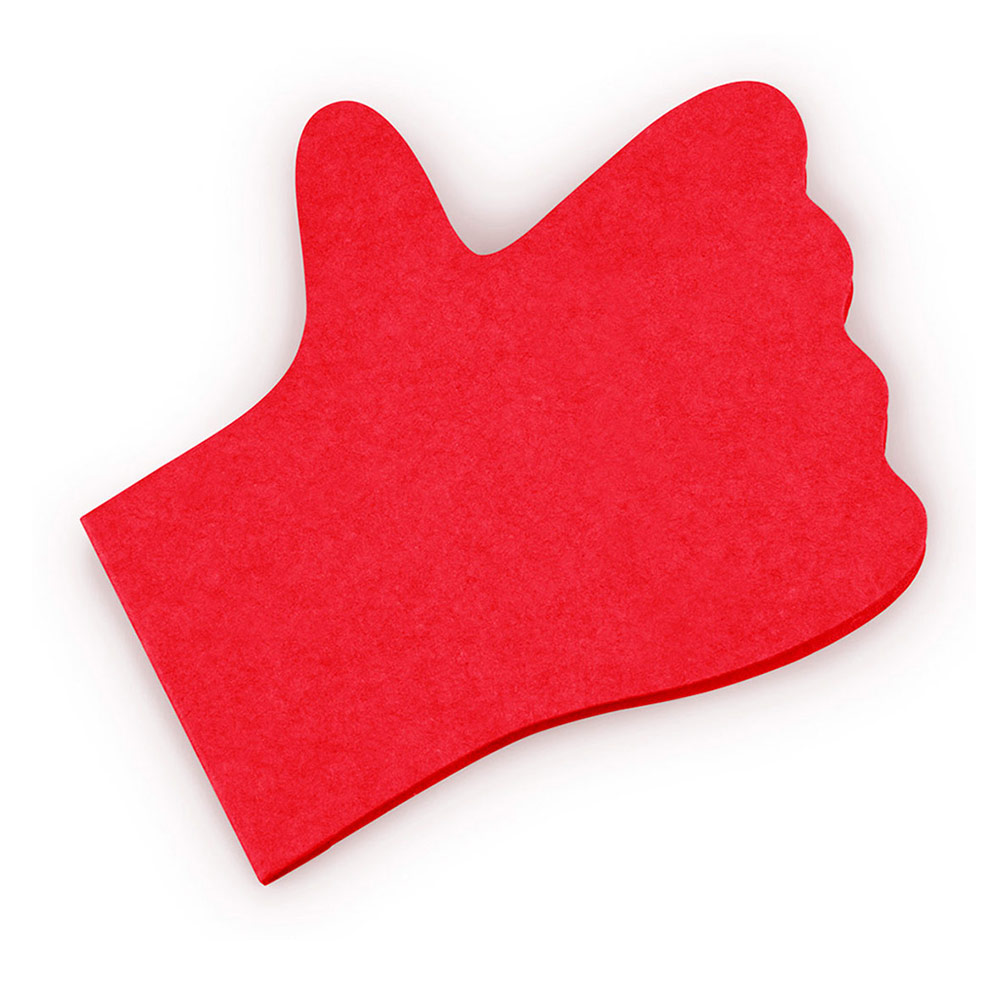 Memo con cubierta con forma de mano con pulgar arriba. 25 notas adhesivas por color (4 colores).
