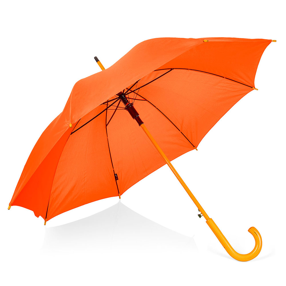 Paraguas mango curvo, de apertura automática y cierre manual. Varillas y eje metálico de acabado negro. Cierre con botón de madera. (Paraguas/Sombrilla)