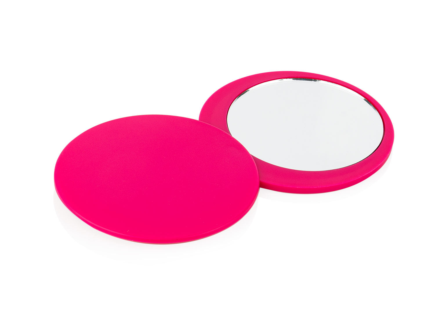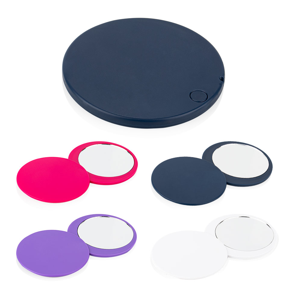 Espejo compacto elaborado en resistente material ABS, con práctico sistema giratorio para abrir y diseño de cerrojo trasero que asegura un cierre firme. Su formato redondo y ligero lo convierte en el accesorio ideal para llevar en el bolso o la cartera, combinando funcionalidad y estilo en cualquier ocasión.