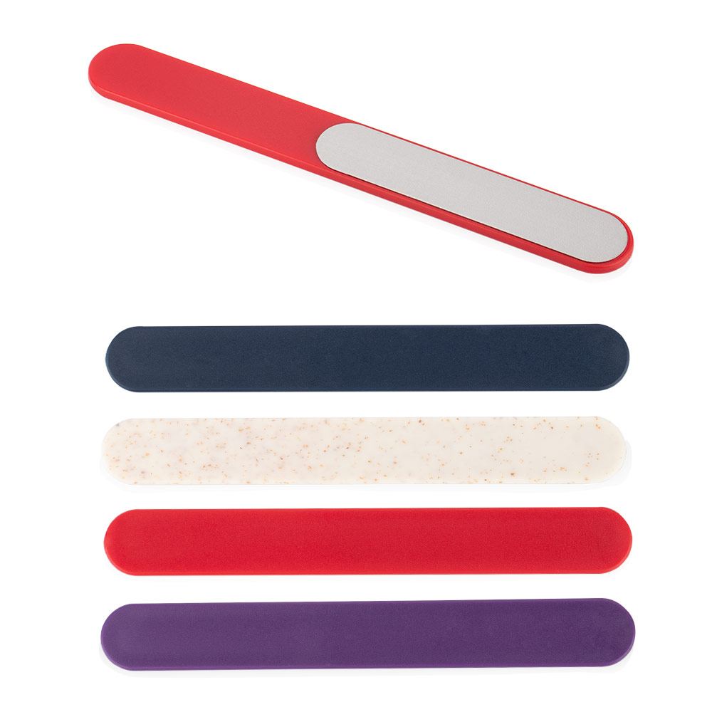Lima para uñas fabricada en ABS con superficie de acero inoxidable, diseñada para ofrecer un limado preciso y duradero. Su parte metálica es lavable y reutilizable, garantizando higiene y resistencia en cada uso. Ideal para mantener el cuidado personal con practicidad y calidad.