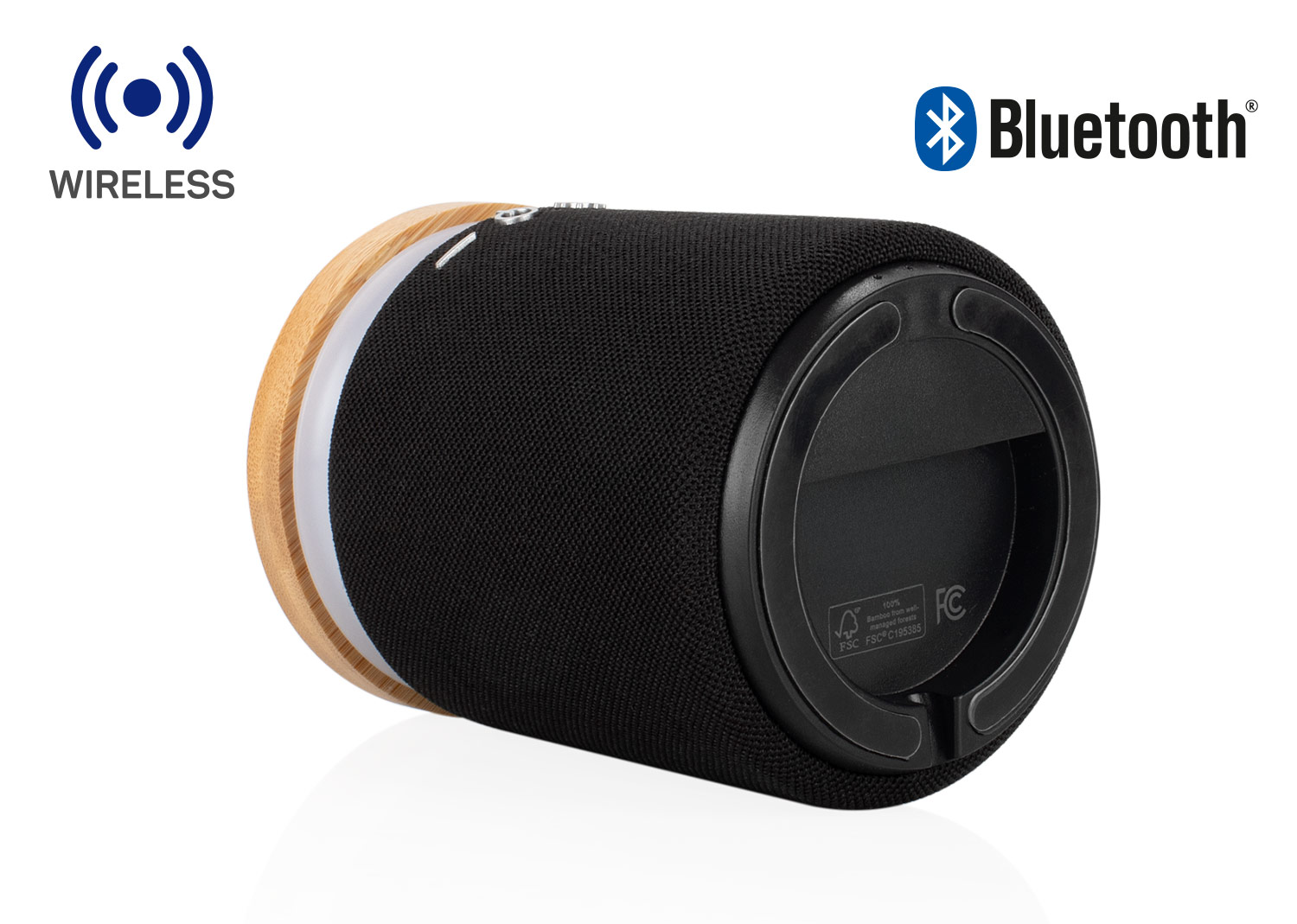 Altavoz inalámbrico con base de carga Qi de 10W que permite cargar dispositivos compatibles colocándolos sobre la superficie superior; cuenta con tecnología Bluetooth 5.1 para una conexión estable y sonido estéreo dinámico, luz LED que se ilumina durante el uso, entrada tipo C, batería de polímero de litio de 1,800 mAh con hasta 8 horas de reproducción continua y un alcance de emparejamiento de hasta 9 metros.